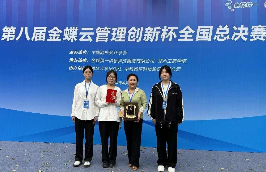 本网讯(通讯员 李岚)为加快建设高质量教育体系,深化教学体制改革,积极开展应用型、复合型技术技能人才培养,提高学生的创新意识和实践能力。2024年4月13日,由中国商业会计学会主办,金蝶精一信息科技服务有限公司与郑州工商学院联合承办的第八届金蝶云管理创新杯全国总决赛在郑州工商学院圆满落幕!由经济与管理学院财务管理专业负责人李岚教授指导的笃行队(由22级财务管理专业李思懿、21级会计学专业陶蕊蕊、刘玉婷3名同学组成)获得全国总决赛二等奖。