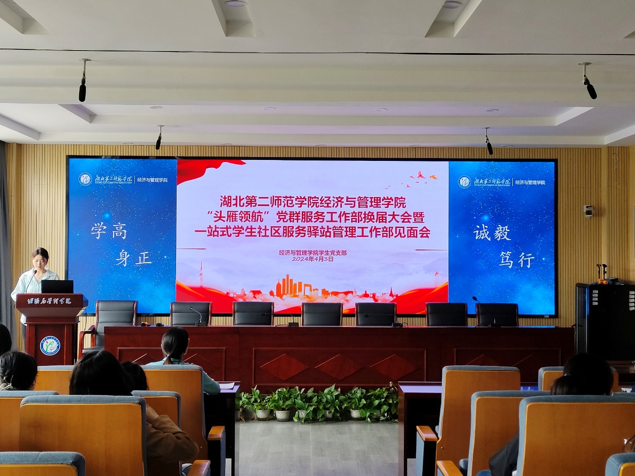 本网讯(见习记者 伯佳艳)2024年4月3日12:30,经济与管理学院顺利举行“头雁领航”党群服务工作部换届大会暨一站式学生社区服务驿站工作部见面会。会议由工作室负责人、党群服务工作部指导老师严雯、党群服务工作部上届及本届全体成员、一站式学生社区服务驿站工作部全体成员参加,办公室小组谭芳主持。