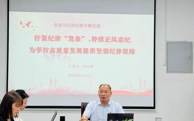 2024年5月23日下午,经济与管理学院党委书记刘元锋在学院5楼会议室为教师第二支部全体党员教师讲授了一场题为“拧紧纪律‘发条’,持续正风肃纪,为学校高质量发展提供坚强纪律保障”的专题党课。本次党课从学党纪、知党纪、明党纪、守党纪四个方面进行了深入阐述和学习。