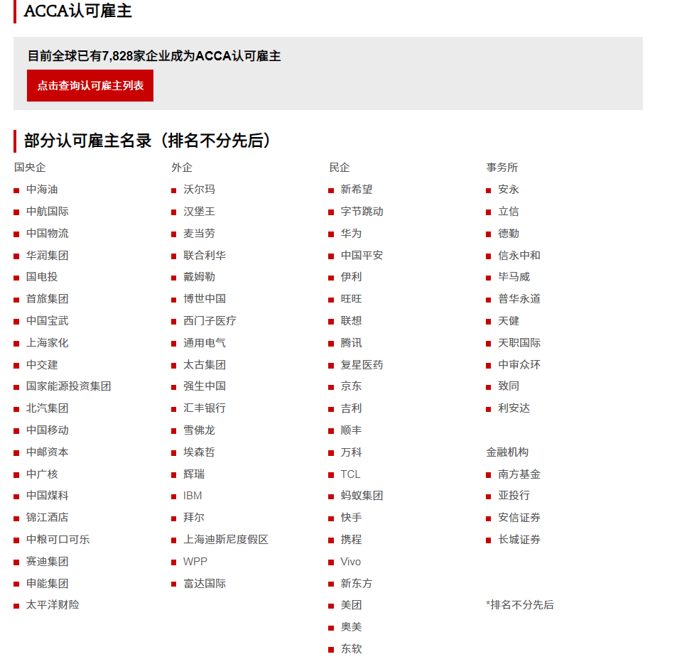ACCA中国区部分认证雇主一览:
