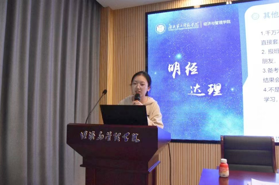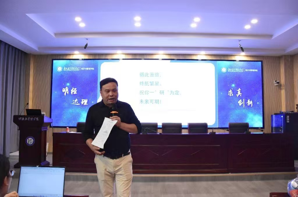 本网讯(通讯员 何心怡)10月16日下午,经济与管理学院在二号楼三楼报告厅召开经济与管理学院2025届毕业生考研指导会,湖北校区总负责人陈孝钧,华中科技大学唐颖和考研学生参与指导会。