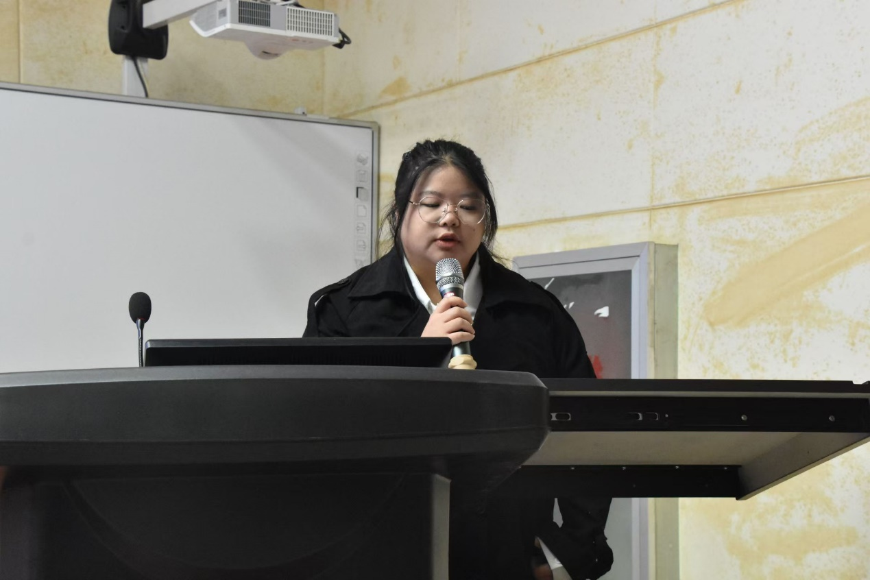 23级财务管理3班郑舒红作为入党积极分子代表分享经验,她结合自身经历鼓励大家在发展入党积极分子的过程中能够全方面发展,端正入党动机,在学习、生活中保持良好的心态和正确的价值观,并表达对同学们的美好祝愿。