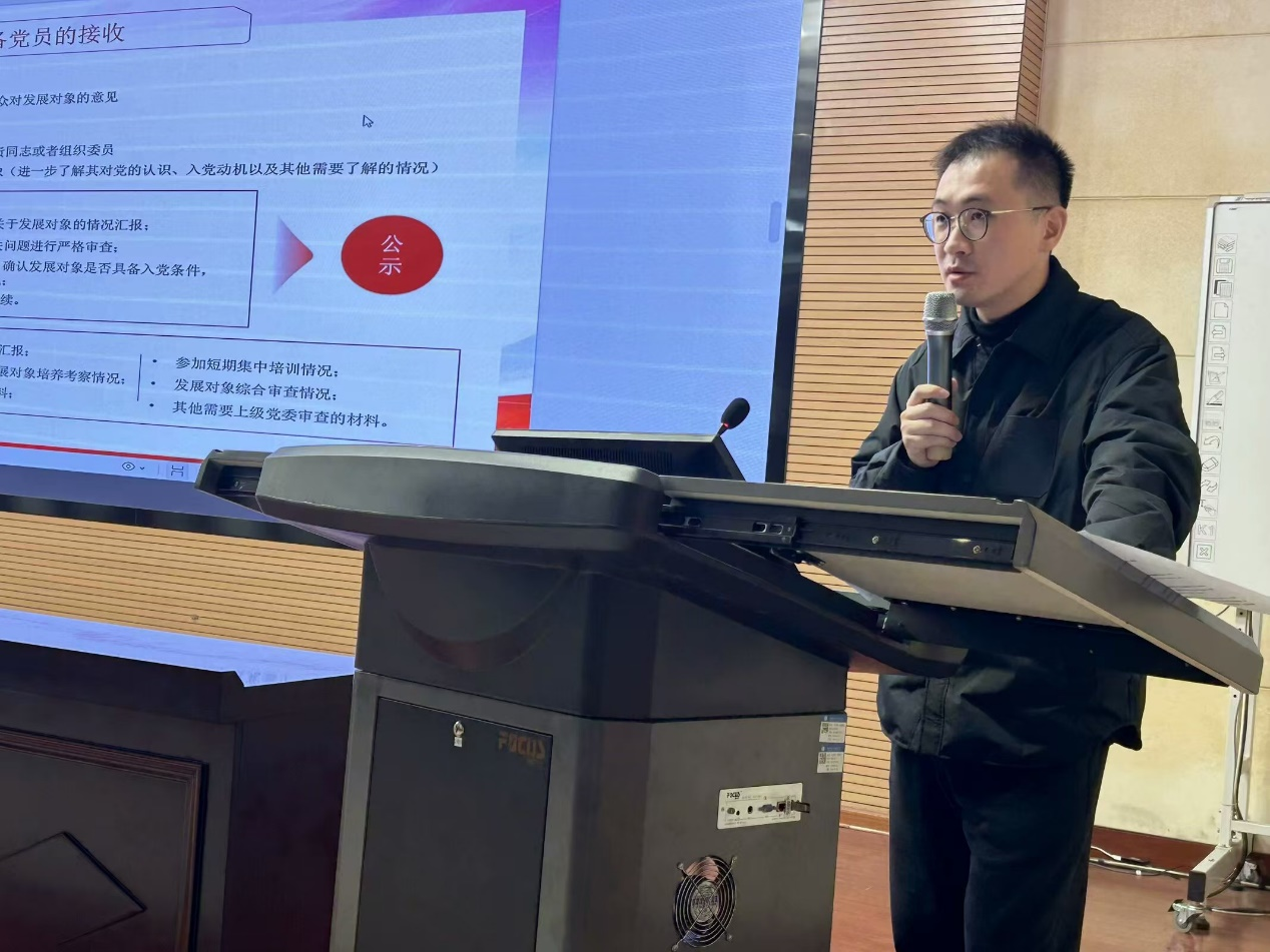 会上,姜炜对入党基本条件、党员发展工作及要求进行介绍,希望同学们时刻牢记为人民服务的初心和使命,以正式党员的标准严格要求自己,并充分利用时间全方位发展自我,积极向党组织靠拢。姜炜对“不是团员能否发展为党员”这一问题进行解答,他强调,只要热爱国家、热爱党,每个人都有发展为党员的潜质,希望学生能锻炼认真务实的态度,做到团员能做到的,更要做到团员不能做到的,把功利抛之脑后,树立一心为人民群众服务和舍小我为大我的精神品质,并鼓励同学们争取早日入党。