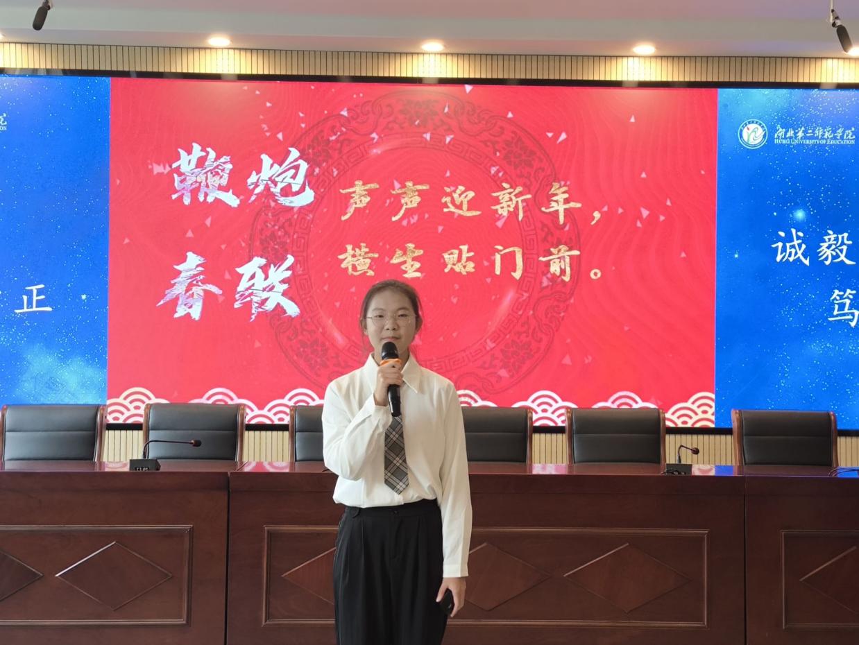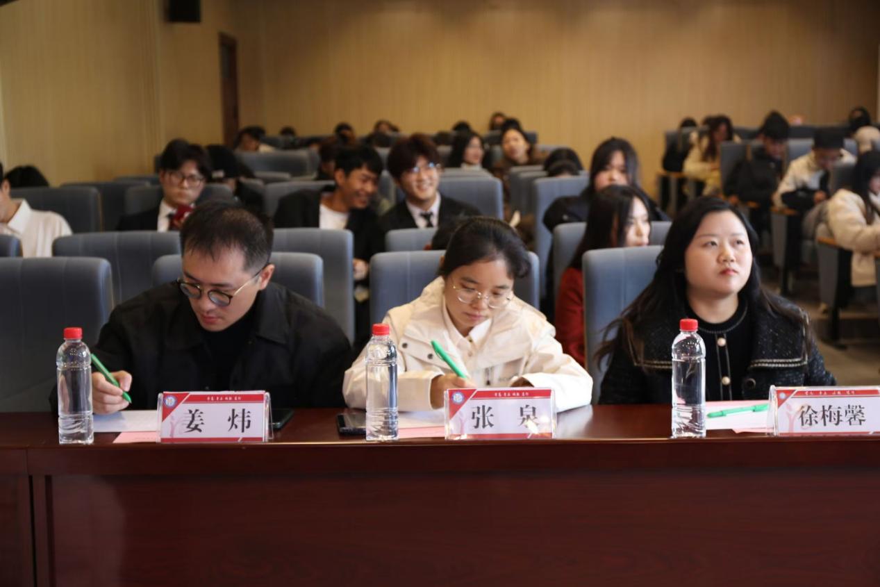本网讯(通讯员 孙华萍)11月26日中午,经济与管理学院(以下简称“经管院”)在2号楼三楼报告厅举行“铸牢中华民族共同体意识•挺膺担当谱写经管新篇章”主持人大赛。学工办主任周慧东、团委负责人徐梅馨、学生会指导老师张泉、大学生心理联合发展协会指导老师杨兰芳、党群服务部指导老师严雯、资助服务部指导老师李婷、征兵服务部指导老师姜炜、就业中心指导老师叶莹出席本次比赛。本次比赛由22级财务管理3班张徐嫣主持。