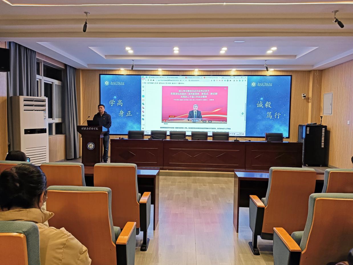 本网讯(见习记者 伯佳艳)11月20日下午,经济与管理学院分党校于二号楼三楼多功能报告厅开展预备党员培训培训班“党的基本知识”集中授课,分党校全体预备党员参与,经济与管理学院党委副书记李京授课。
