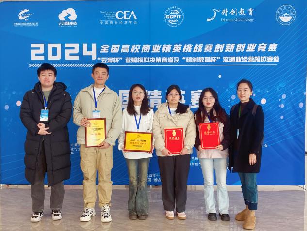 本网讯(通讯员 汪佳佩)11月29日至12月1日,我院市场营销专业的汪佳佩、姜天贵、董捷、刘伟、余芬等五位学子,在指导老师陈凡的带领下,奔赴潍坊理工学院,征战2024全国高校商业精英挑战赛创新创业竞赛“云泽杯”营销模拟赛道。