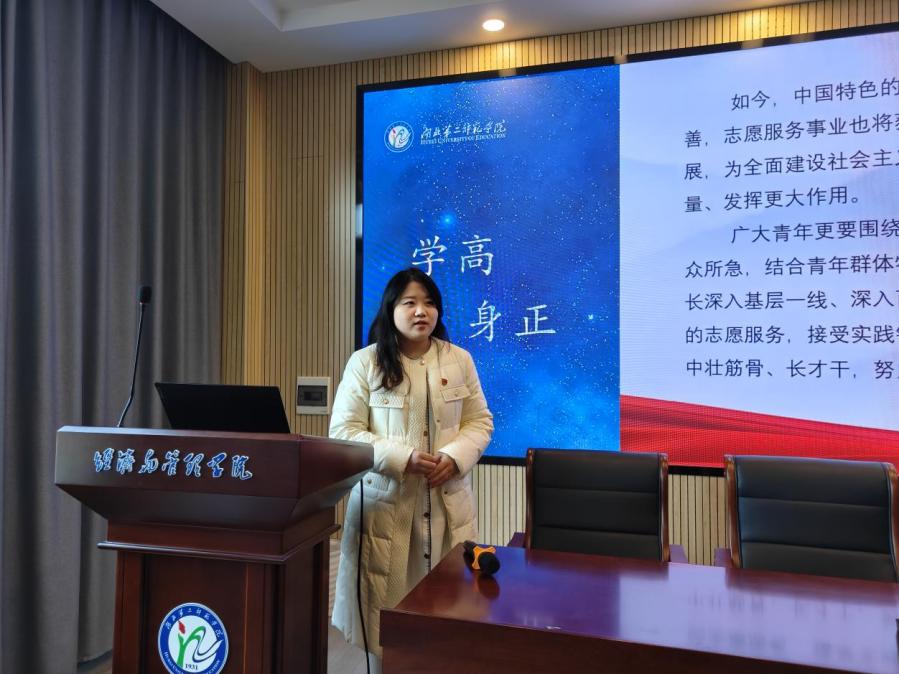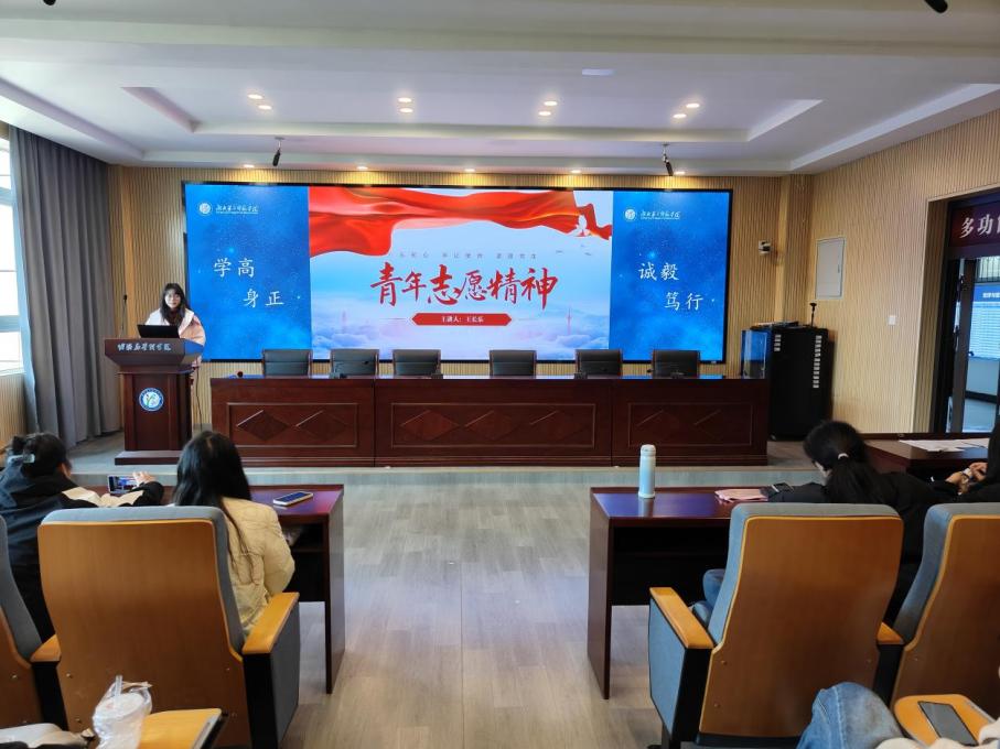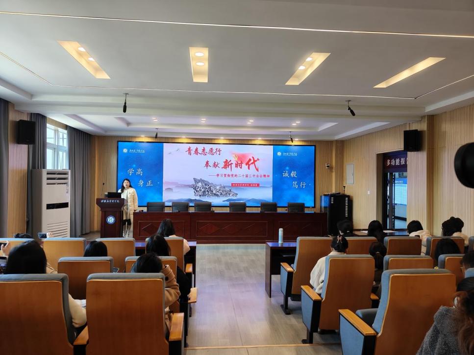 本网讯(见习记者 魏雪晴)12月6日中午,经济与管理学院分党校在二号楼三楼多功能报告厅开展“青春志愿行,奉献新时代”主题课程,经济与管理学院分党校发展对象培训班全体学员参加,经济与管理学院团委负责人徐梅馨授课。