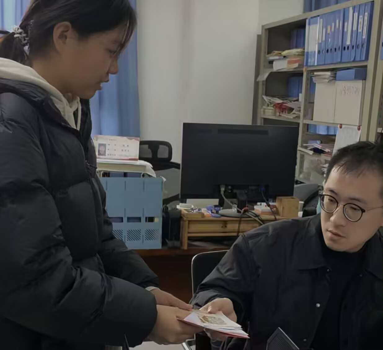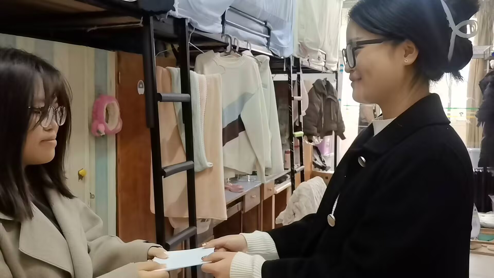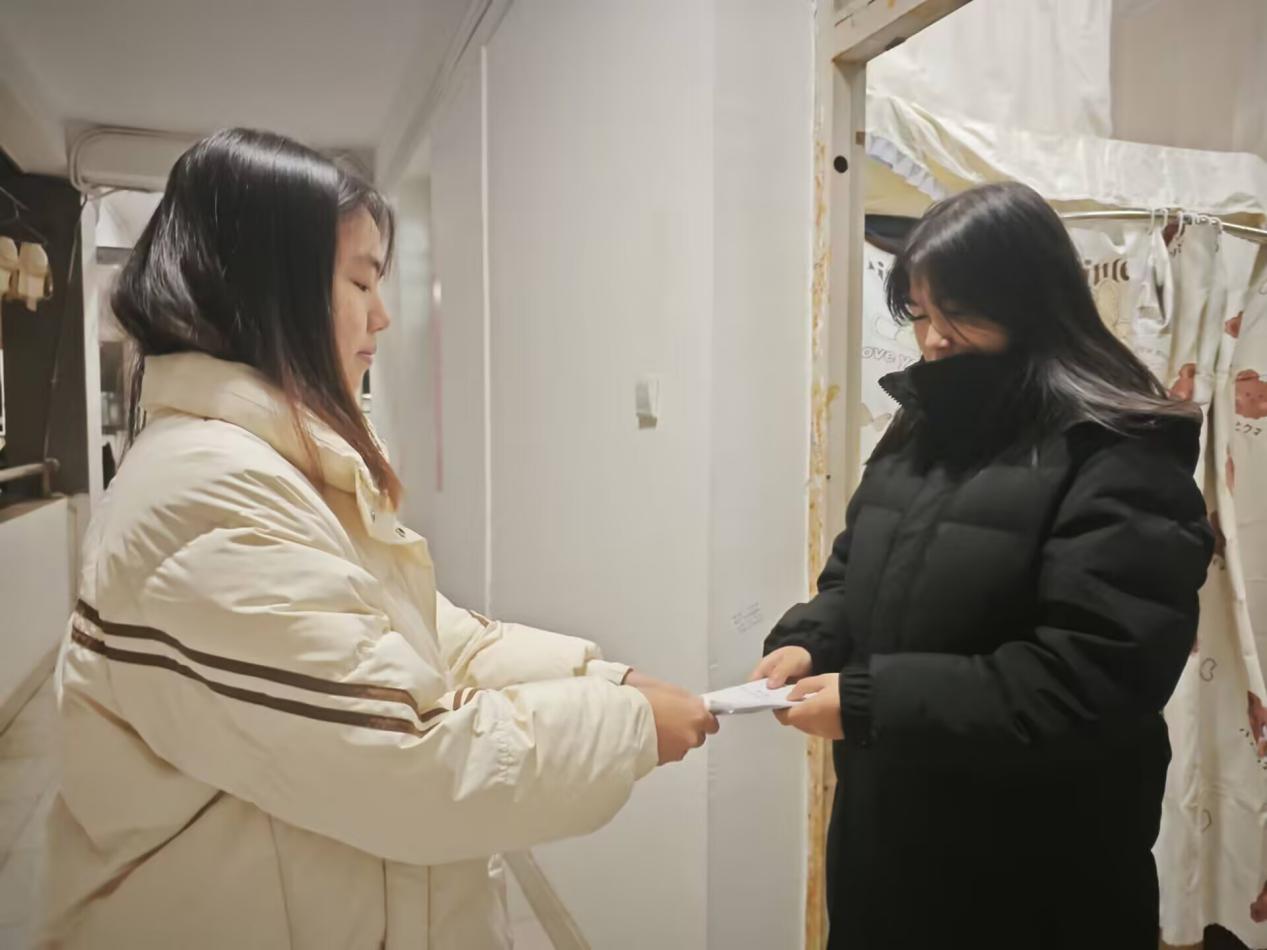 (图为奖助评贷工作部成员将信件递送给辅导员)