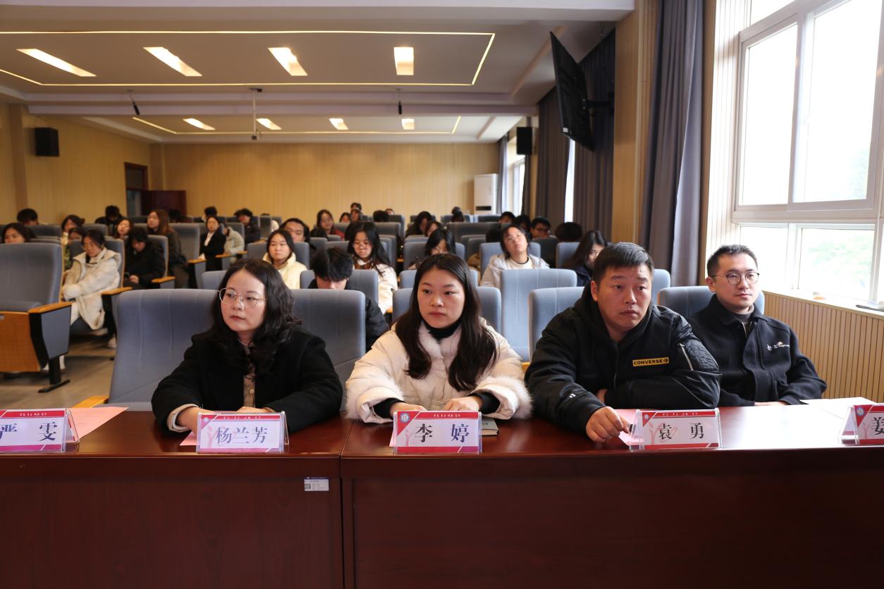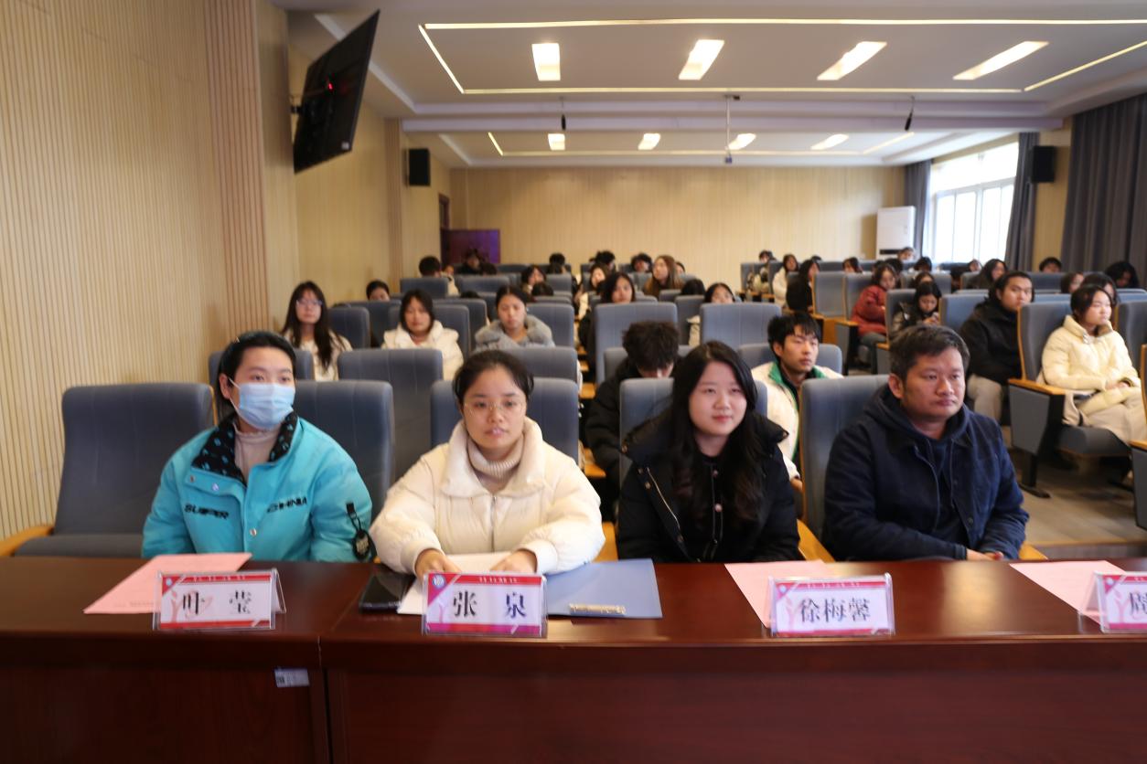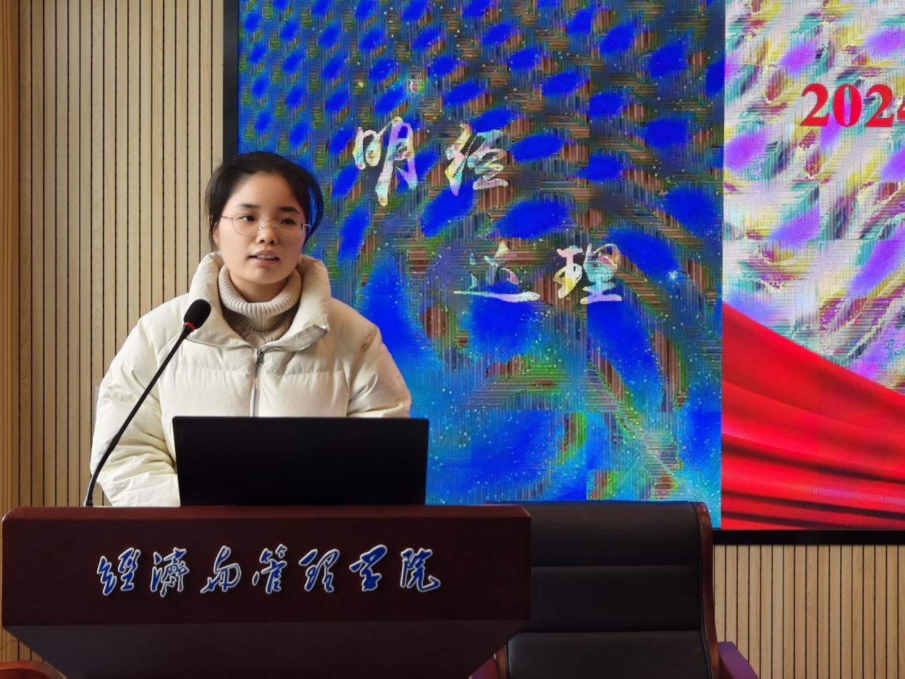 肖芬作分团委、学生会年度工作总结汇报,列举了学院在2024年开展的一系列卓有成效的工作与活动,鼓励和引导学生干部们继续努力。