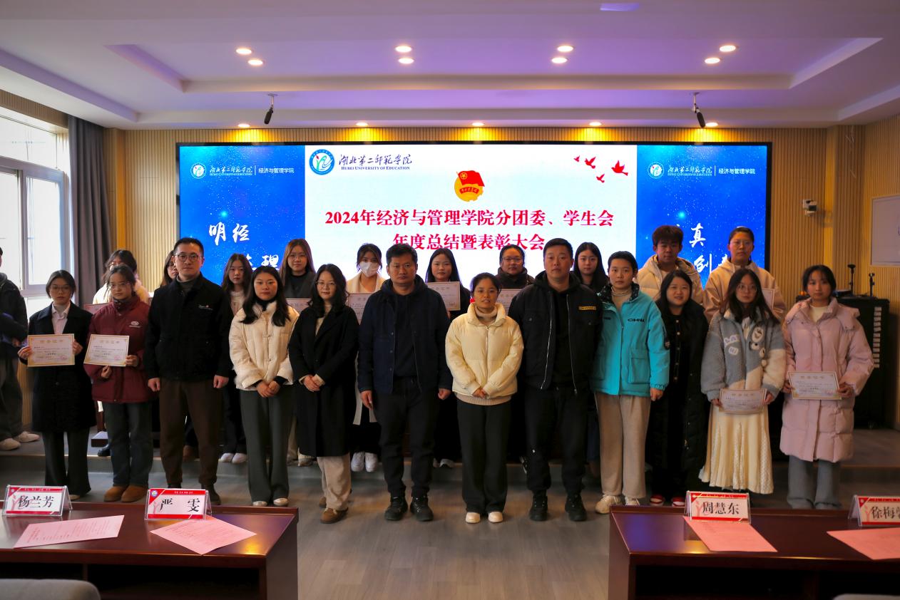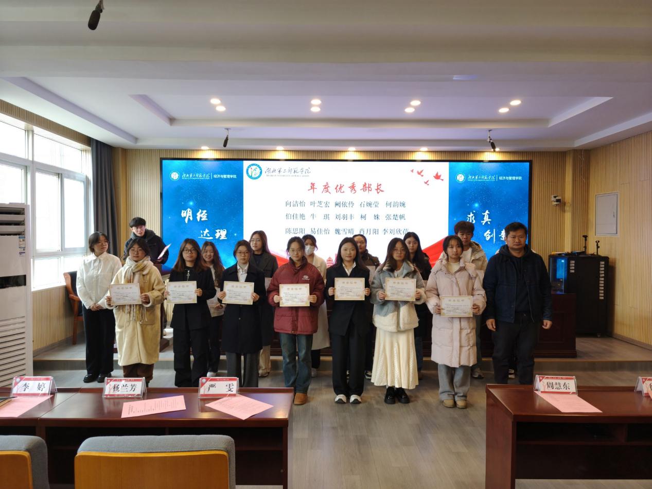 向兵宣读《关于表彰2024年经济与管理学院分团委、学生会年度先进个人的决定》。周慧东为年度优秀部长、优秀干事颁奖。