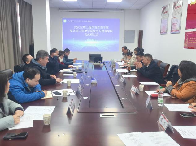 本网讯(通讯员 冯祖玲)12月19日上午,武汉生物工程学院校务委员会顾问赵正洲、管理学院院长陈中文、管理学院党委书记吴先明一行赴我校经济与管理学院(以下简称“经管院)”开展调研交流。经管院院长陈池波、党委副书记李京及学院领导班子成员、相关专业负责人参加。