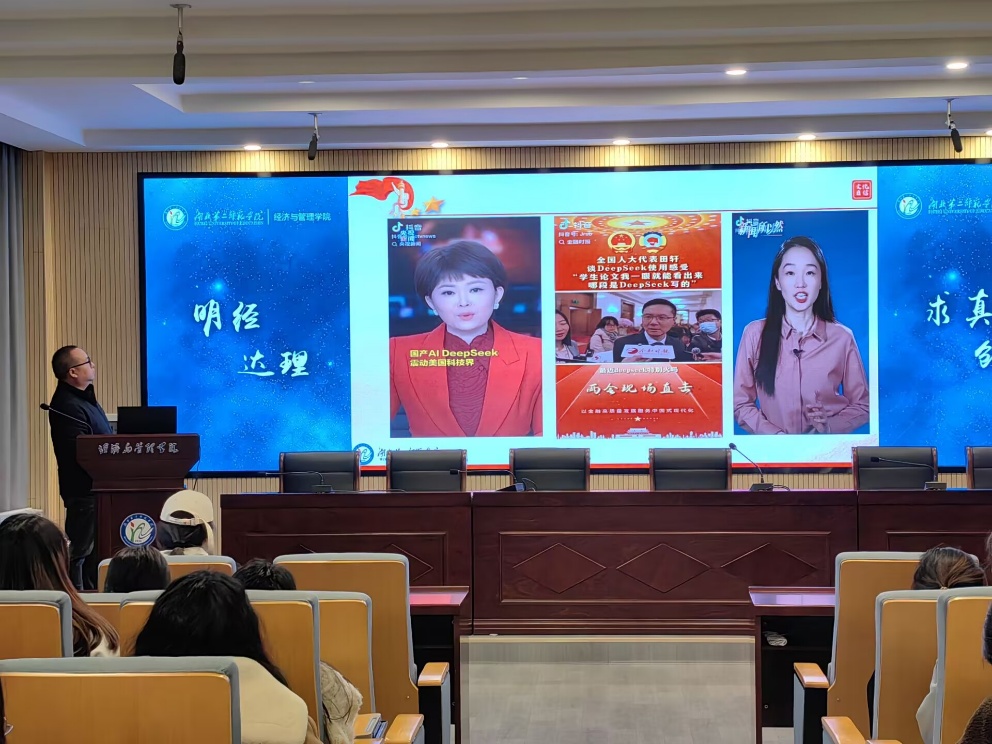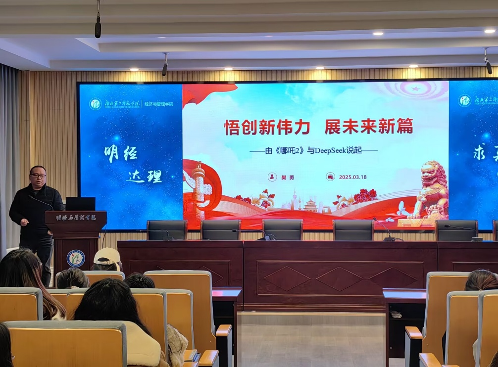 谈及科技创新,樊勇着重介绍了Deepseek人工智能领域成果,鼓励同学们关注前沿科技动态,培养创新思维,在未来职业生涯中利用科技创新为社会创造价值。