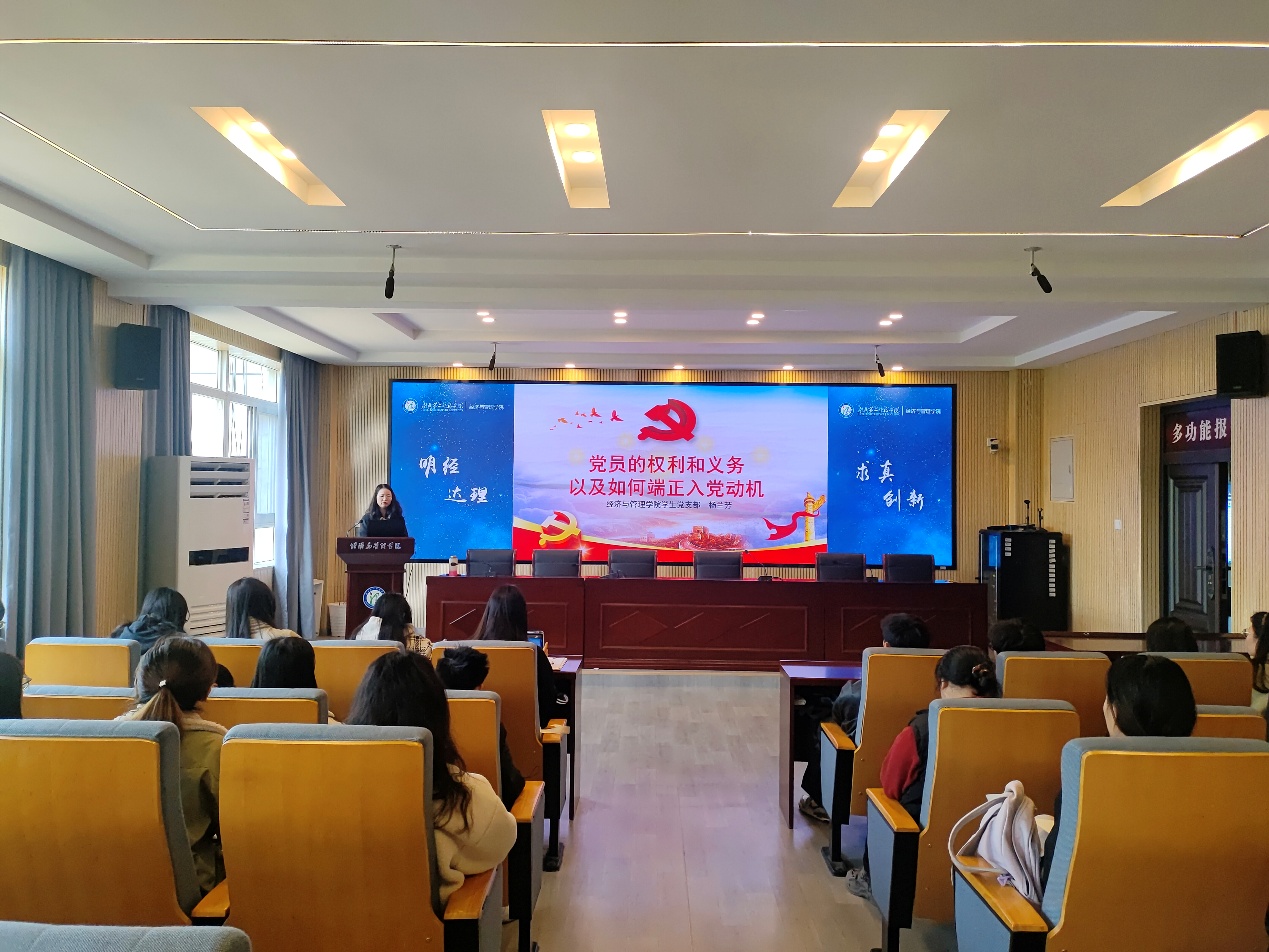 本网讯(见习记者 汪雅雯)3月19日中午,经济与管理学院(以下简称“经管院”)分党校发展对象培训班在2号楼三楼多功能报告厅开展“党员的权利与义务以及如何端正入党动机”主题课程,分党校发展对象培训班全体学员参加,经管院学生第一党支部纪检委员杨兰芳进行本次授课。