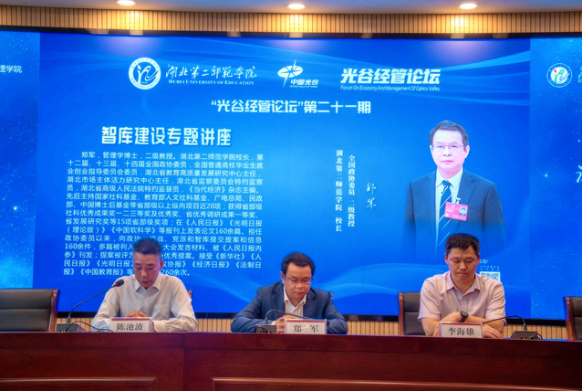 本网讯(通讯员 栾晓梅 常静)2025年5月15日下午,“光谷经管论坛”第二十一期在经济与管理学院3楼报告厅举行。校长郑军教授受邀担任主讲嘉宾,围绕“智库建设的思考”主题展开专题报告。学校科研处处长李海雄、各教学学院科研副院长、科研平台负责人及经济与管理学院全体教师共同参加这场知识盛宴。论坛由经济与管理学院院长陈池波主持。