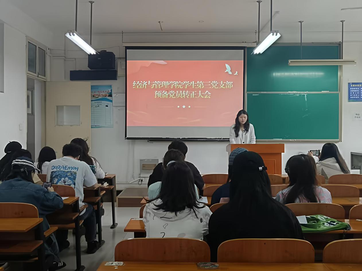 本网讯(见习记者 杨书欣)5月23日中午,经济与管理学院学生党支部在2号楼三楼召开支部大会讨论预备党员转正事宜,支部全体党员参加会议,各学生党支部书记主持会议。