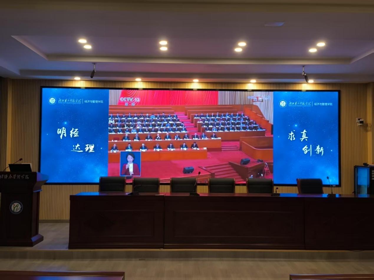 本网讯(通讯员 肖沐希)为深入学习贯彻2025全国两会精神,4月2日下午,经济与管理学院(以下简称“经管院”)在2号楼三楼报告厅开展2025年全国两会学习活动。