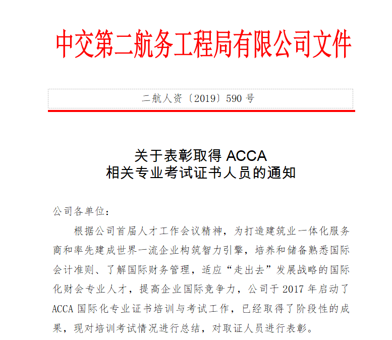 ACCA与雇主展开的员工培养项目(以中交二航局举例)
