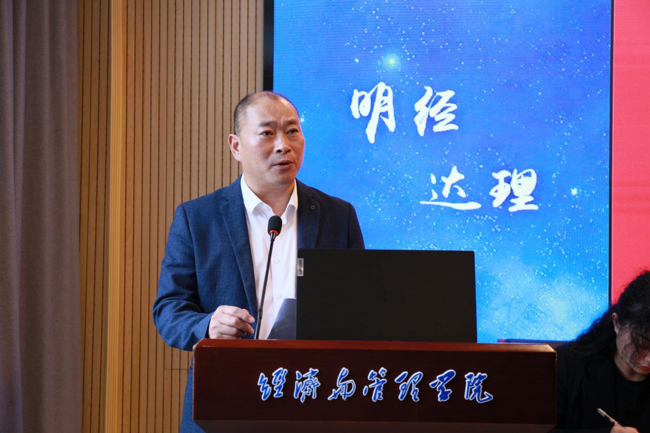 经济与管理学院党委书记刘元锋代表学院党委作了题为《继往开来 砥砺前行 奋力谱写经济与管理学院高质量发展新篇章》的工作报告。报告全面系统地回顾和总结了过去学院党委在加强党的全面领导、推进党的建设、落实立德树人根本任务、增强学科建设、提升人才培养质量、增强科研创新能力等方面取得的主要成绩和宝贵经验,客观分析了当前学院发展面临的机遇和挑战,并提出学院未来五年的发展思路和战略重点。报告中指出,学院将始终坚持以立德树人为根本,以高质量发展为主题,以改革创新为动力,深入实施“政治领航”工程,以更强担当筑牢发展根基;聚力实施“学科登峰”工程,以更实举措构筑创新高地;全面实施“育人提质”工程,以更优标准培育经管人才;协同实施“治理增效”工程,以更大力度激发内生动力。全体党员认真听取并审议通过了党委工作报告。