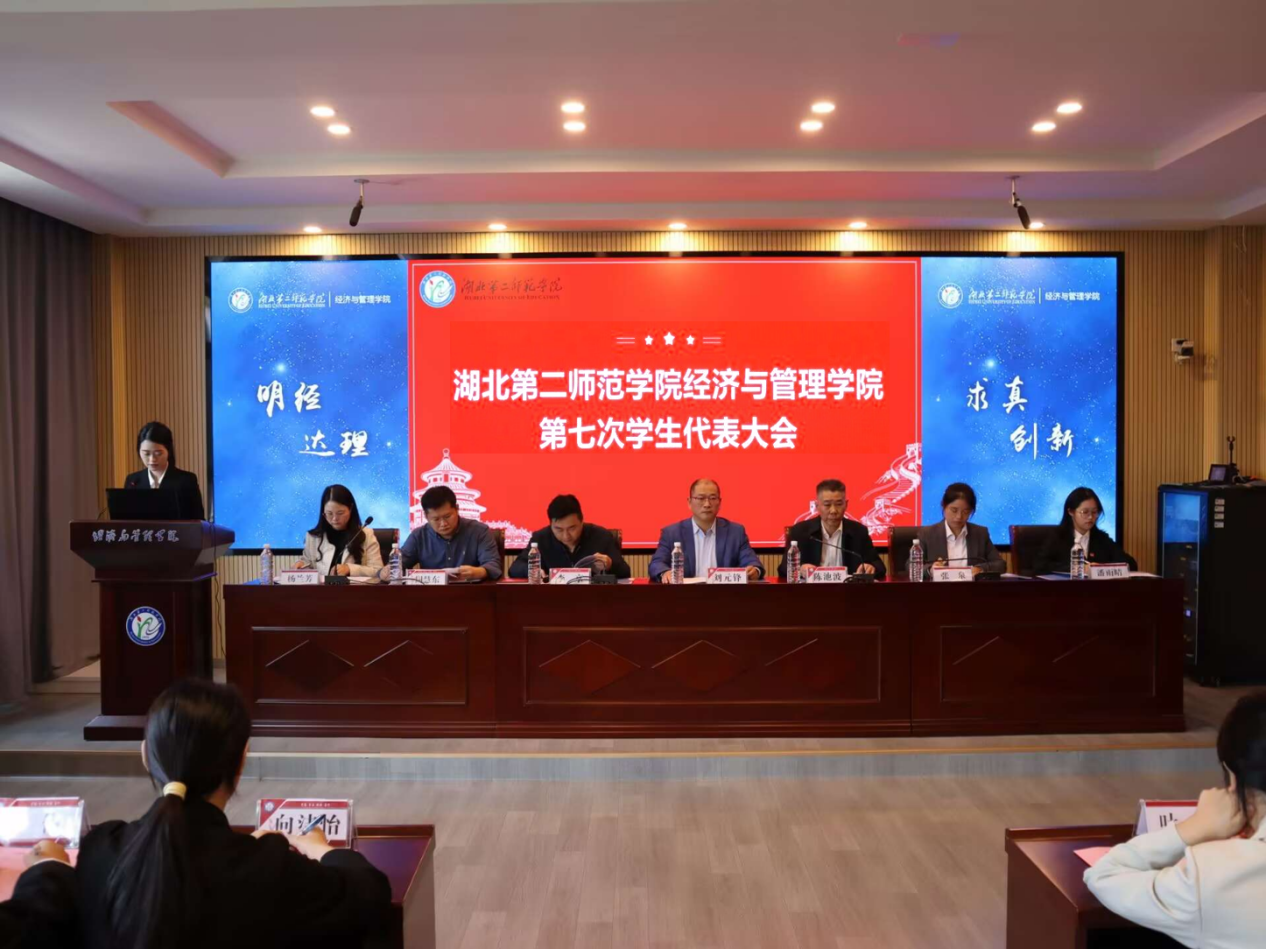 第七次学生代表大会正式开始,第十届学生会执行主席尹郭凡作湖北第二师范学院经济与管理学院第十届学生会工作报告。